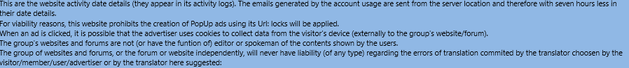 It is important that the user clearly understands that, as is logical, with the account usage he/she is accepting and consenting to all the uses that the website makes (automatically or through the tasks of the administration department) of the data contained in the user account, in accordance with the content of the document of the group: 'Terms (conditions of use) & Privacy Policy' (with the unique objective of enabling the functioning of the website and/or facilitating the processing for which the data were collected and/or used automatically by the website/forum and/or were required/requested in accordance with the content of that document of the group).